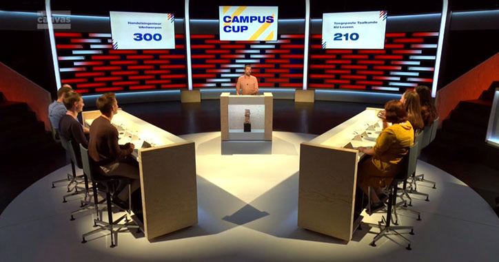 Voor de Tv Quiz DE CAMPUS CUP verzorgde ik het conceptuele decor ontwerp. ontwierp ik de spelgrafiek en ontwikkelde ik mee de quiz.